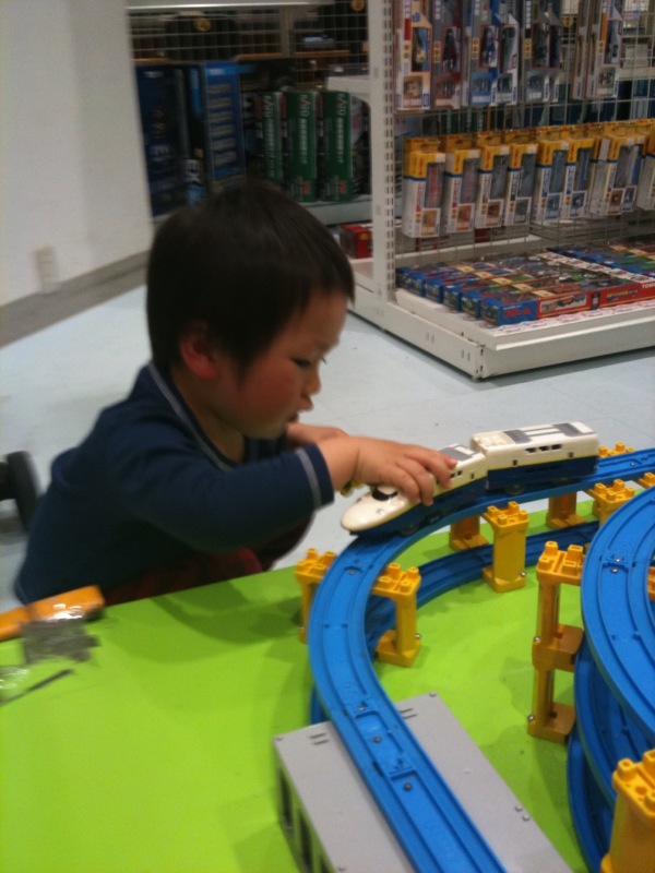 トーマスや踏切などの仕掛けに電池が入ってないのに遊ぶ遊ぶ!
